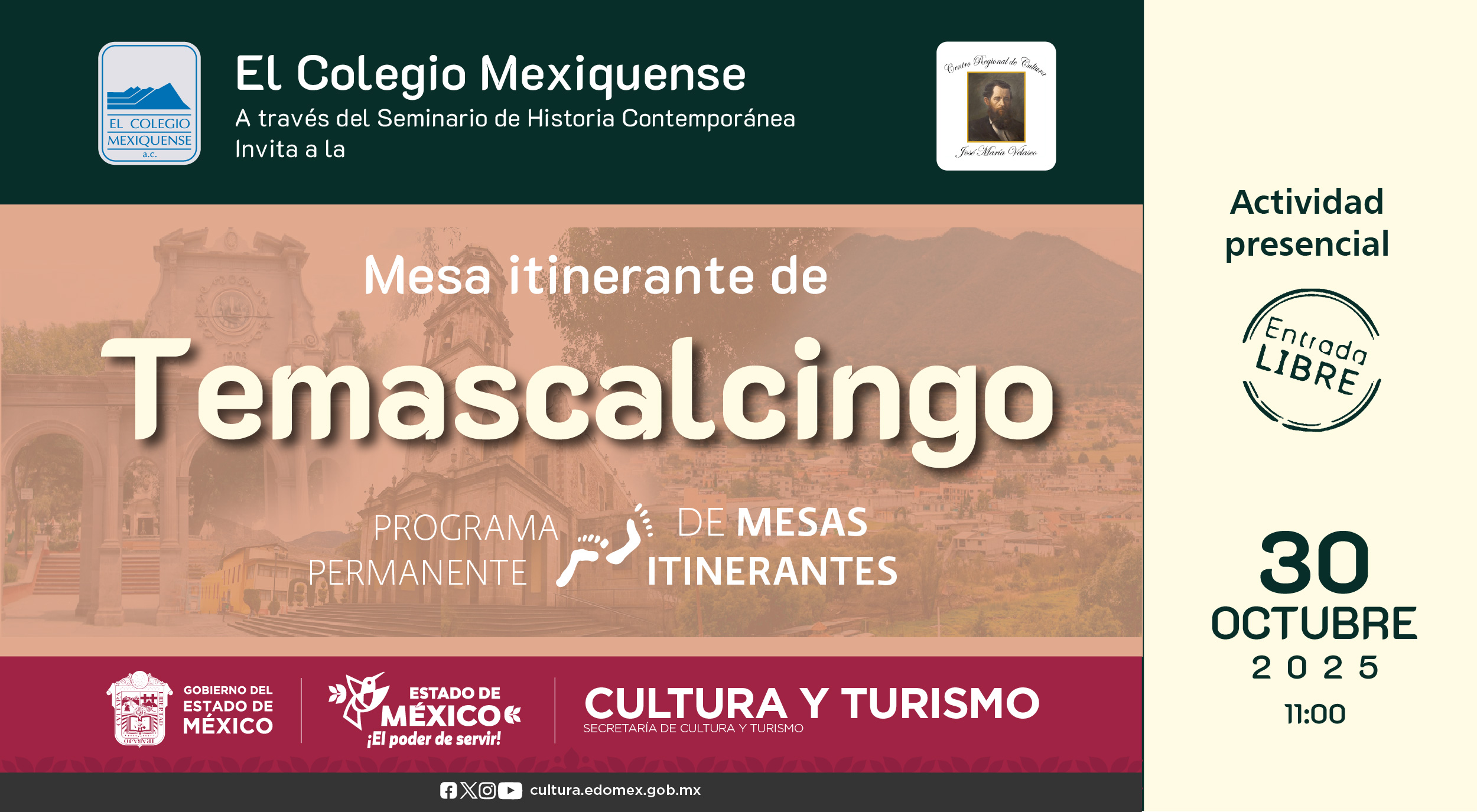 El Colegio Mexiquense iniciará las sesiones de la 18ª edición del seminario Arqueología y Etnohistoria de Mesoamérica con una conferencia sobre el inframundo teotihuacano y también reiniciará el exitoso programa de mesas itinerantes con la dedicada a Villa Victoria.