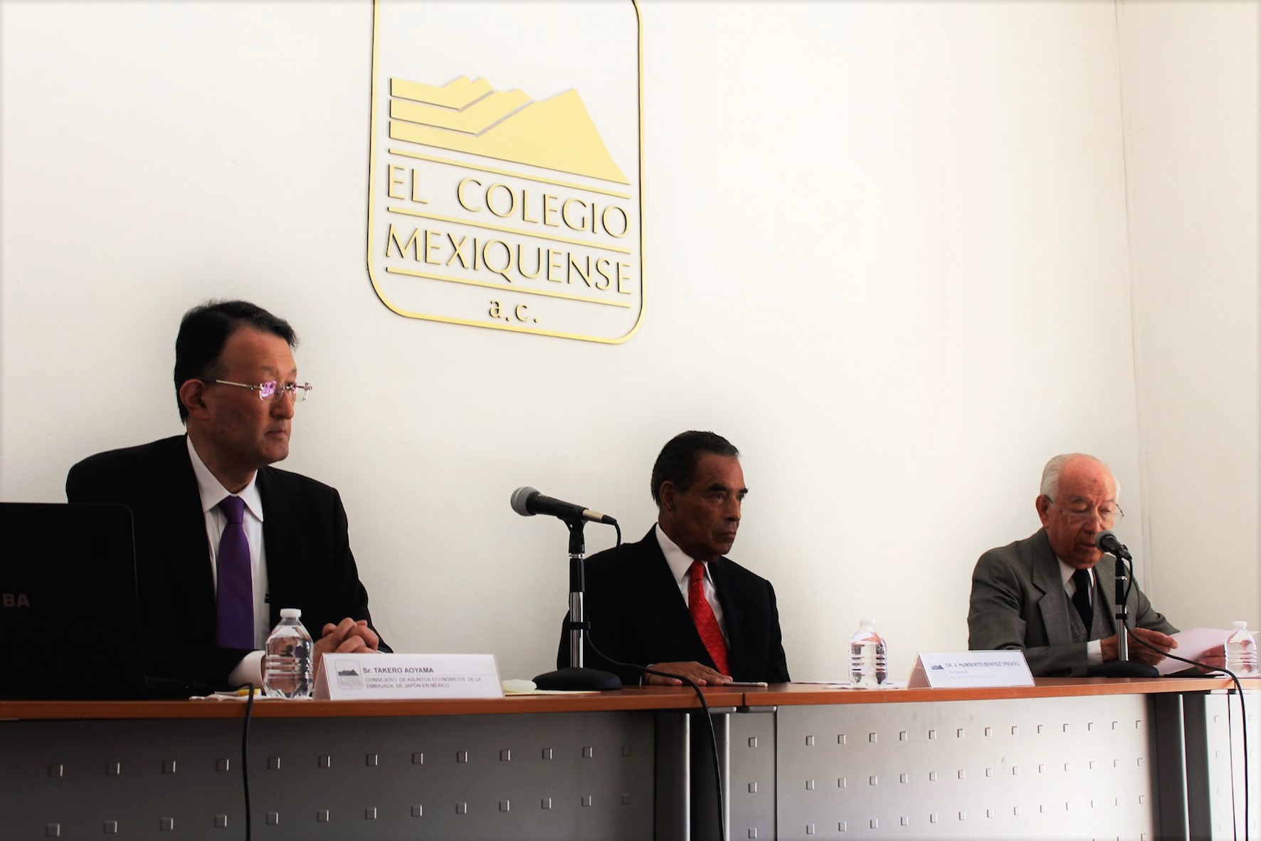 En el inicio de la conferencia, el presidente de El Colegio Mexiquense, A. C., Víctor Humberto Benítez Treviño, hizo un recuento histórico de las relaciones entre México y Japón, destacó los logros del ciclo de conferencias y el tratado de paz que impulsó México luego de la Segunda Guerra Mundial, así como los apoyos mutuos en momentos difíciles, como los sismos y el tsunami que afectó a Japón, mientras que el investigador Omar Martínez Legorreta presentó al conferenciante y se refirió al cumplimiento de los propósitos del ciclo de ofrecer el panorama de las relaciones de México con Corea del Sur, China. India y Japón.